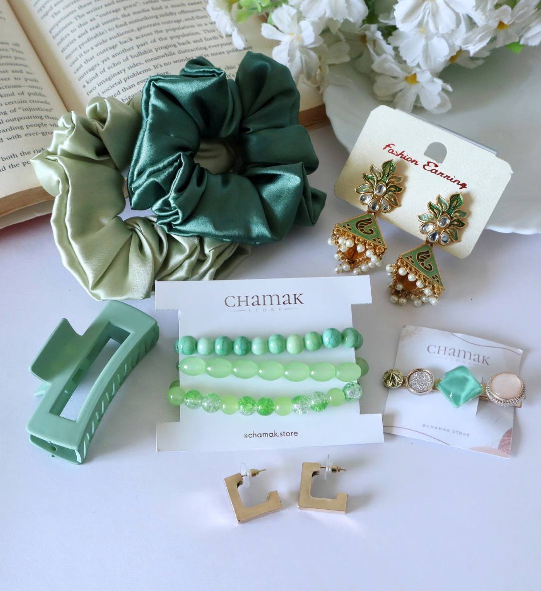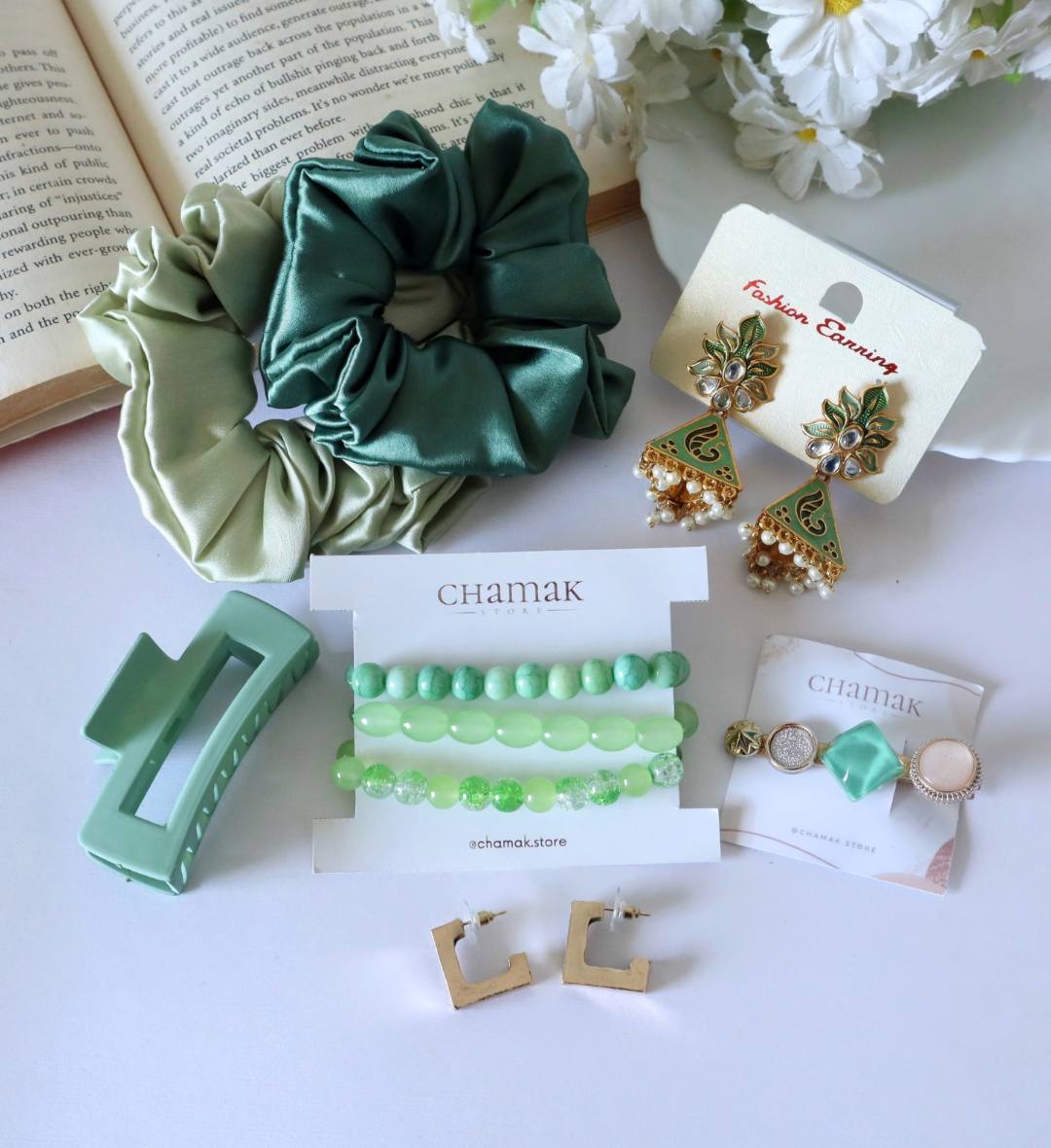 Green gift hamper, Birthday hamper, Green accessories set, cute girls hamper, aesthetic accessory hamper, birthday gift for girls, Green themed gift box, women accessory hamper, trendy jewellery hamper, curated gift hamper India