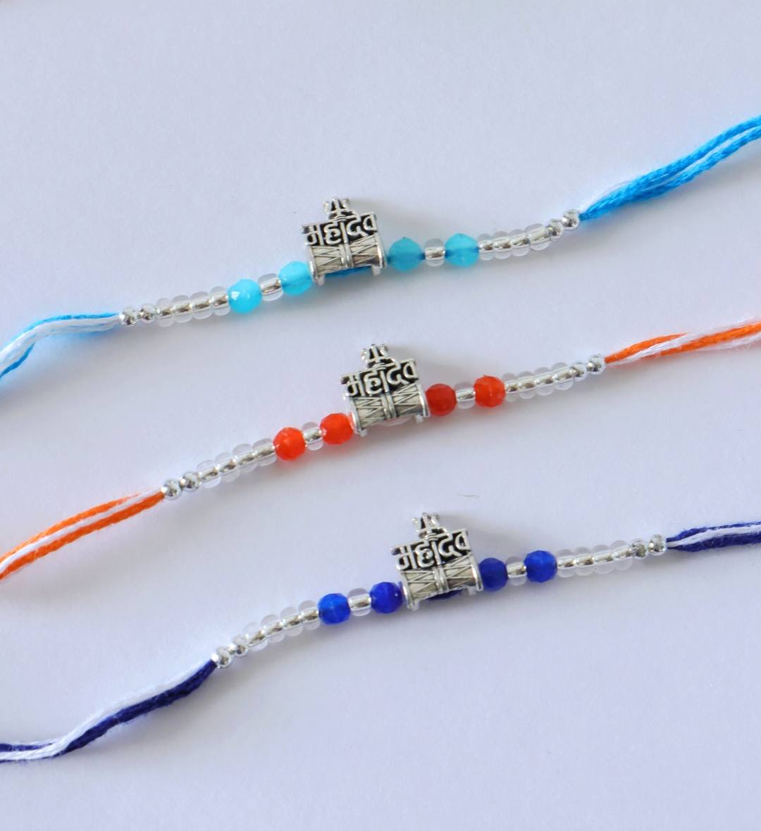 Invoke blessings and celebrate the divine bond this Raksha Bandhan with our Mahadev Rakhi. This rakhi features intricately designed ‘महादेव’ metal charms strung with colorful beads and soft multicolor threads. A perfect fusion of devotion, tradition, and style — ideal for brothers who admire Lord Shiva.