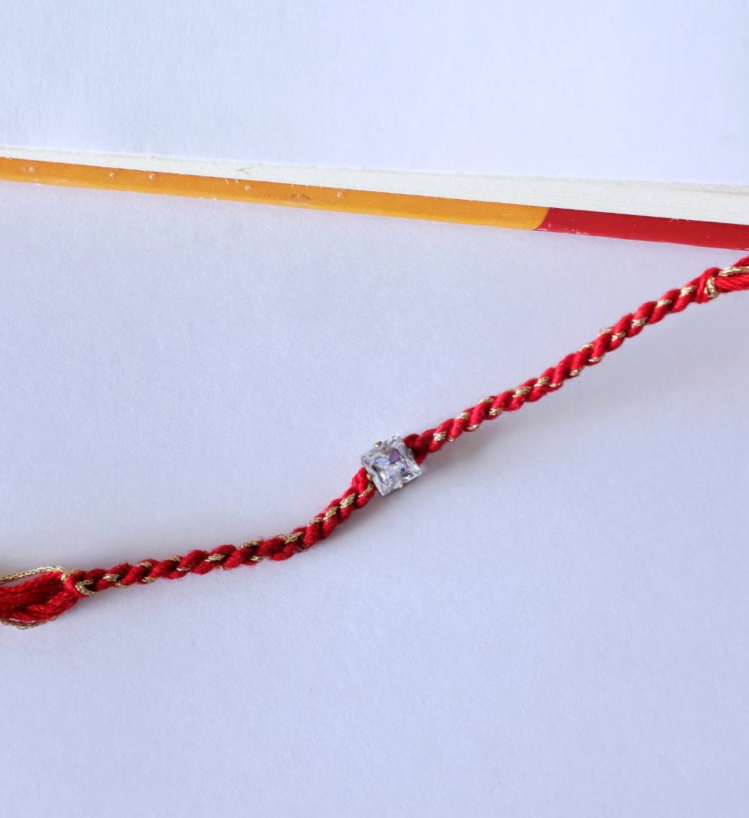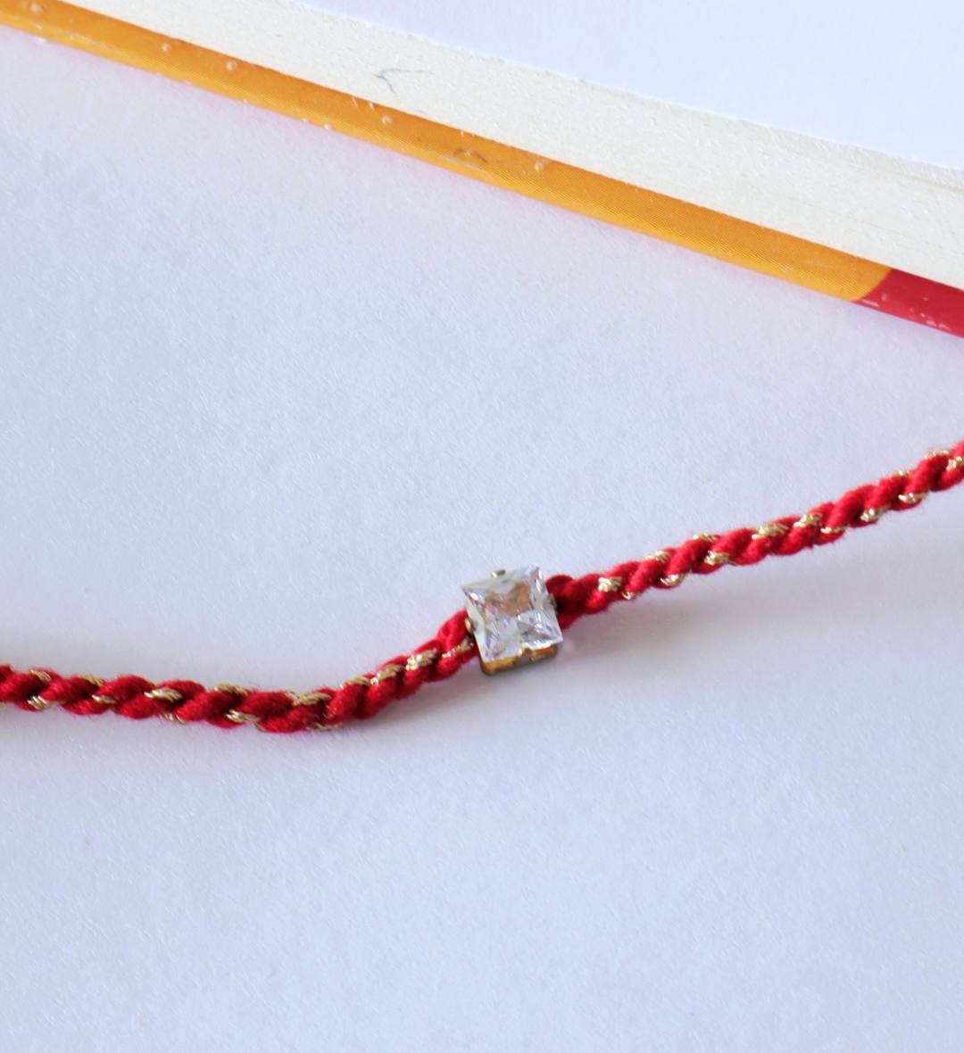 Add a touch of minimal elegance to your Raksha Bandhan celebration with this beautiful Stone Rakhi. Featuring a sparkling square-cut stone on a classic red-golden twisted thread, this Rakhi perfectly balances tradition with a modern aesthetic. Its simple yet sophisticated design makes it ideal for brothers who appreciate understated charm.