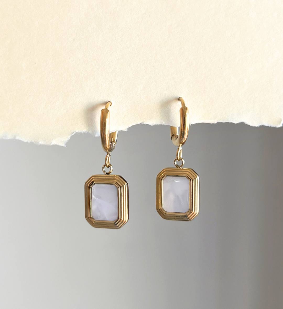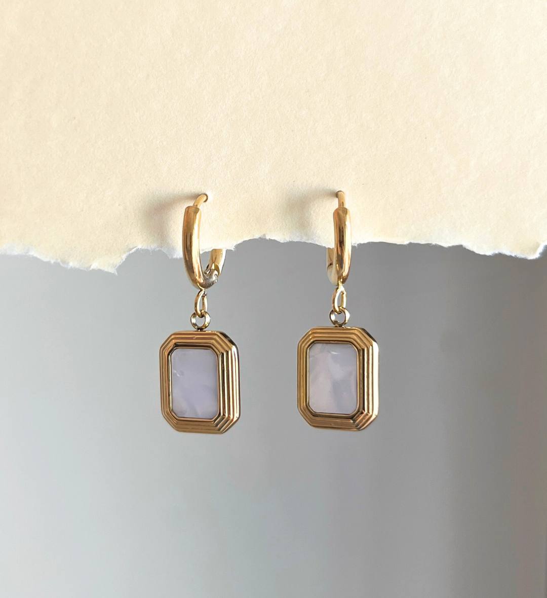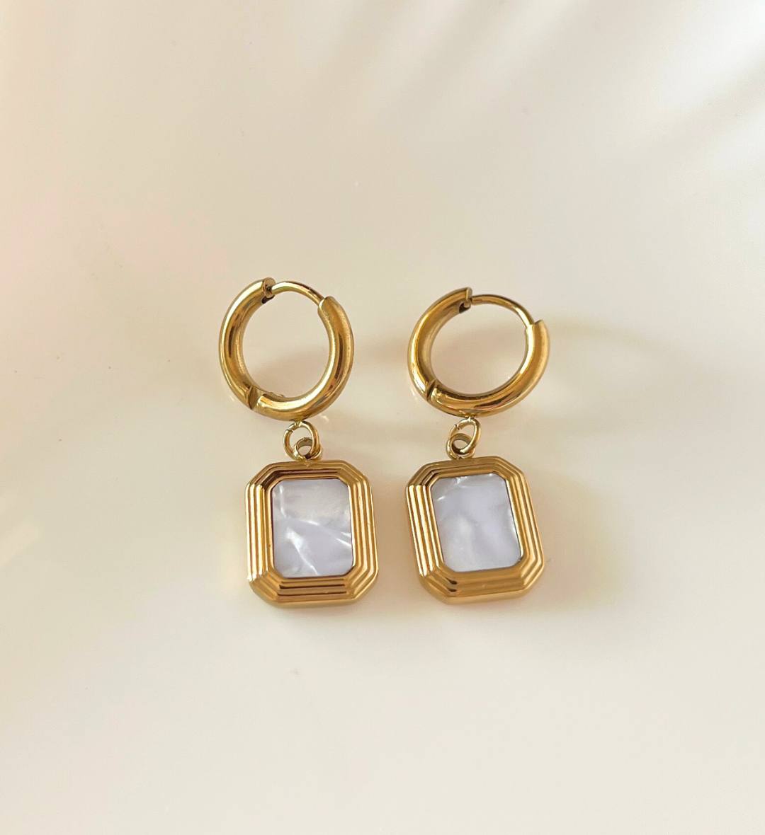 white stone earrings, gold white drop earrings, marble earrings for women, minimal white earrings, geometric gold earrings, classy everyday earrings, elegant drop earrings, aesthetic white earrings